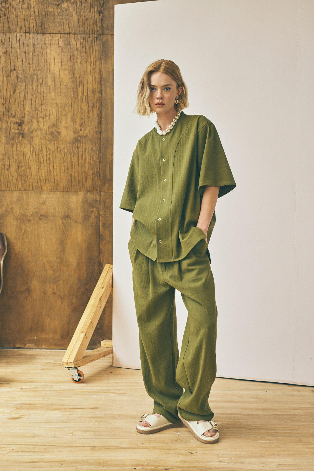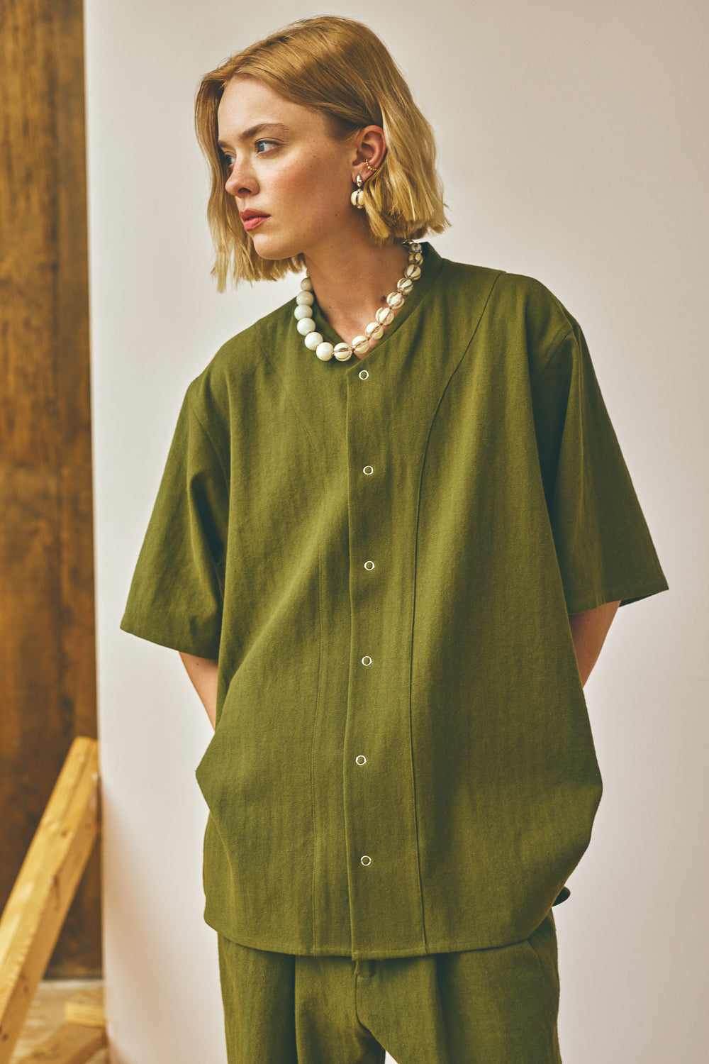New for Spring/Summer 2026 and inspired by vintage baseball uniforms from the 1920's and classic workwear. The Baseball Tee is cut with movement in mind and features flat-felled seams, a slim collar band, curved hems, and a snap front closure.