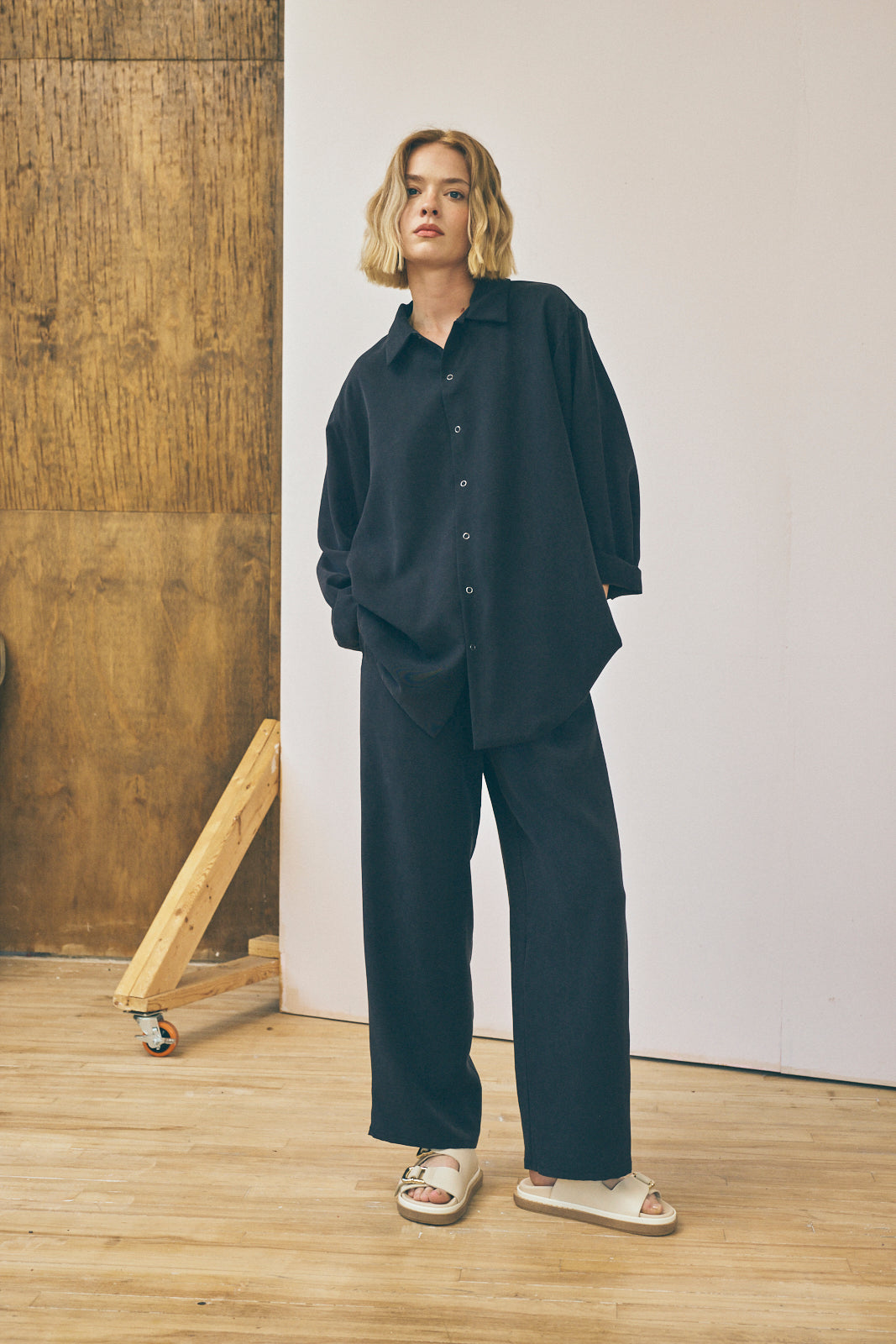 Oversized Snap Shirt - Sandwashed Black